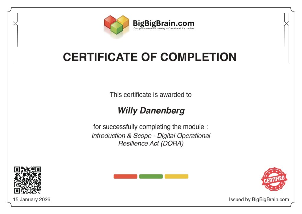 Certificates, Proof, and Audit Logs: Turning Training into Verifiable Compliance In regulated environments, completing a course is not enough. Regulators, auditors, and internal control functions do not ask whether training exists — they ask for proof: BigBigBrain.com is designed to turn compliance training into verifiable, auditable evidence. Course Completion Is Conditional on Passing the Test Every compliance course on […]